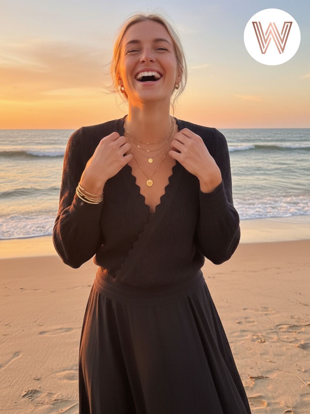 ✔ Scalloped V-neck detail